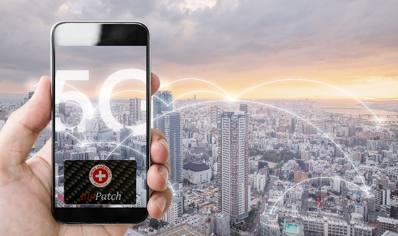 Ein BioPatch, auf der Rückseite Ihres Handys befestigt, sorgt für Schutz vor 5G